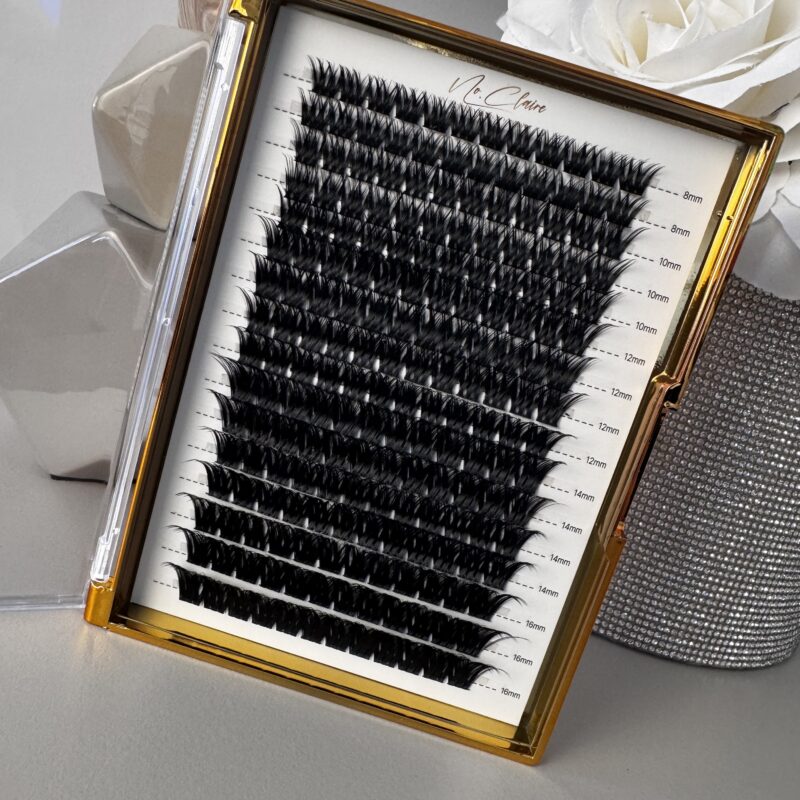Kasetka NORI kępek rzęs skręt D mix 8-16mm jest zestawem rzęs różnej długości mix 8-16mm zawierający 16 rzędów z 12 kępkami.