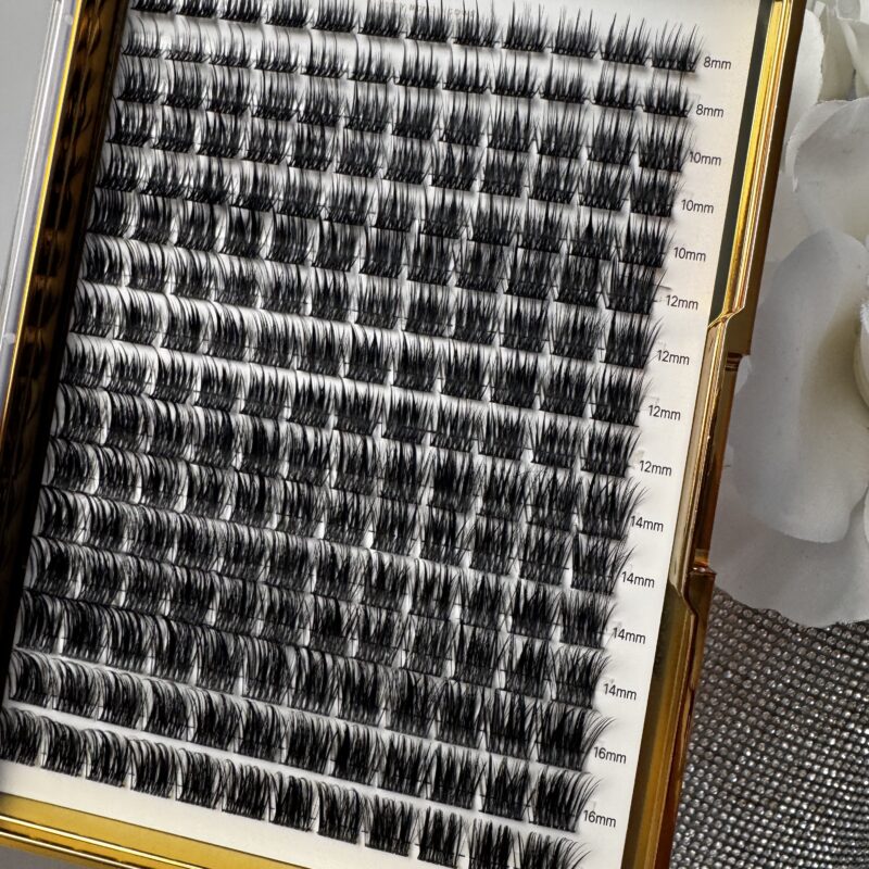 Kasetka POSH kępek rzęs skręt D mix 8-16mm jest zestawem rzęs różnej długości mix 8-16mm zawierający 16 rzędów z 11 kępkami.