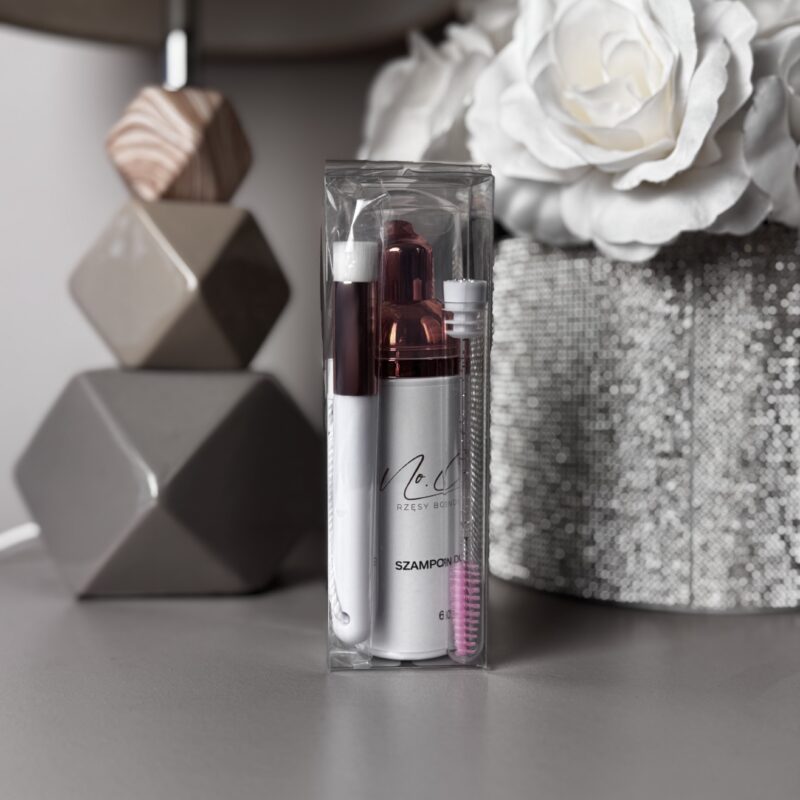 Zestaw służy do obowiązkowego etapu mycia i odtłuszczania rzęs naturalnych przed aplikacją kępek No.Claire.